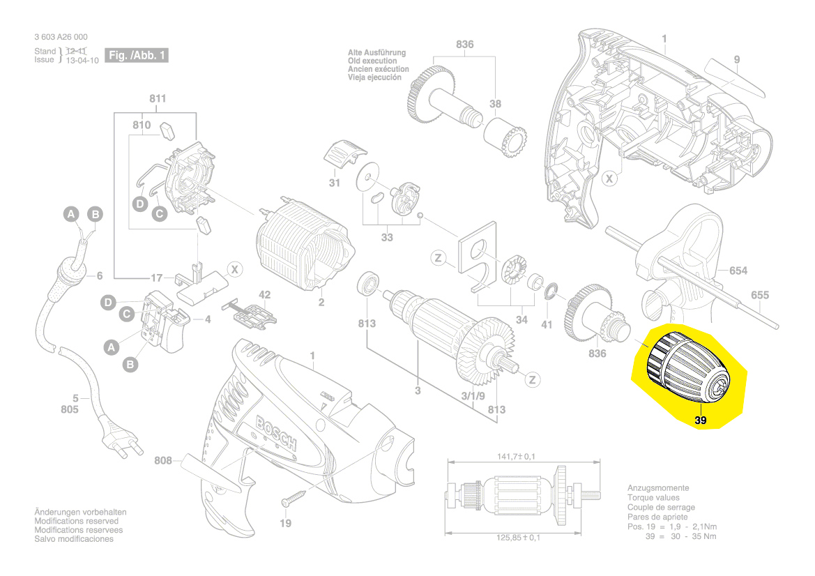 Mandrin Perceuse Psb500 Psb530ra Psb550re 13mm Bosch Piece Piece 2609002051